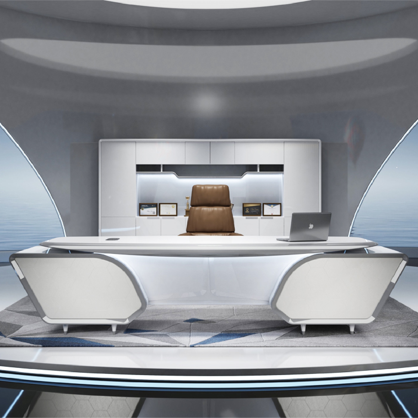It features a unique geometric shape that adds a touch of luxury to any workspace