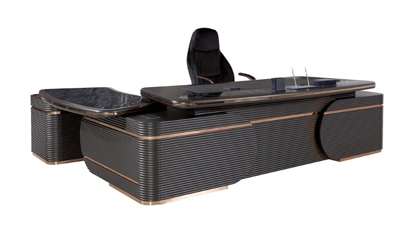 It features a unique geometric shape that adds a touch of luxury to any workspace